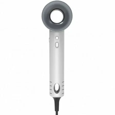 Secador de pelo iónico blanco con una potencia de 1600W, el motor DC sin escobillas y tecnología iónica. Tiene 3 niveles de velocidad y 4 niveles de temperatura con función de aire frío. Su diseño es ultraligero con filtro desmontable. Incluye concentrador y difusor.