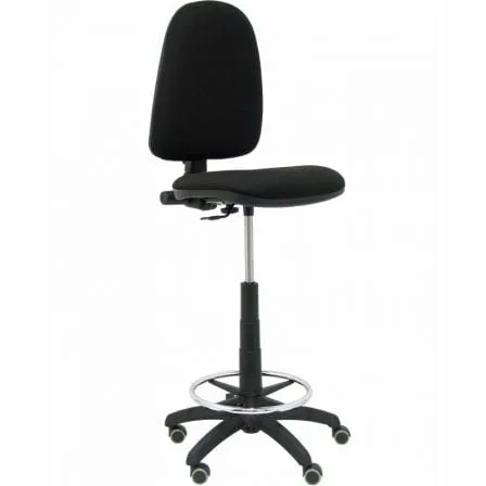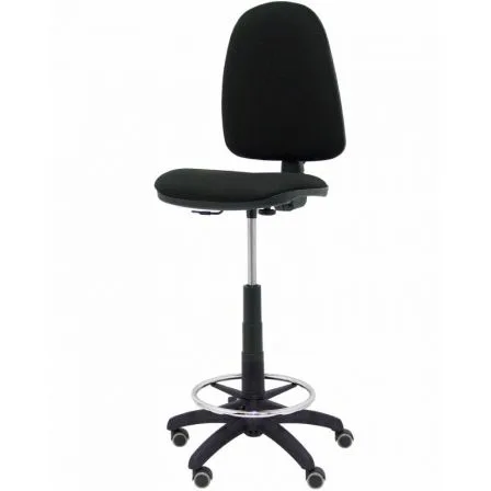 Taburete Aýna con mecanismo Contacto permanente básico tapizada con Tela color Negro. Equipado con Base poliamida negra, Sin brazos y Ruedas de parqué.