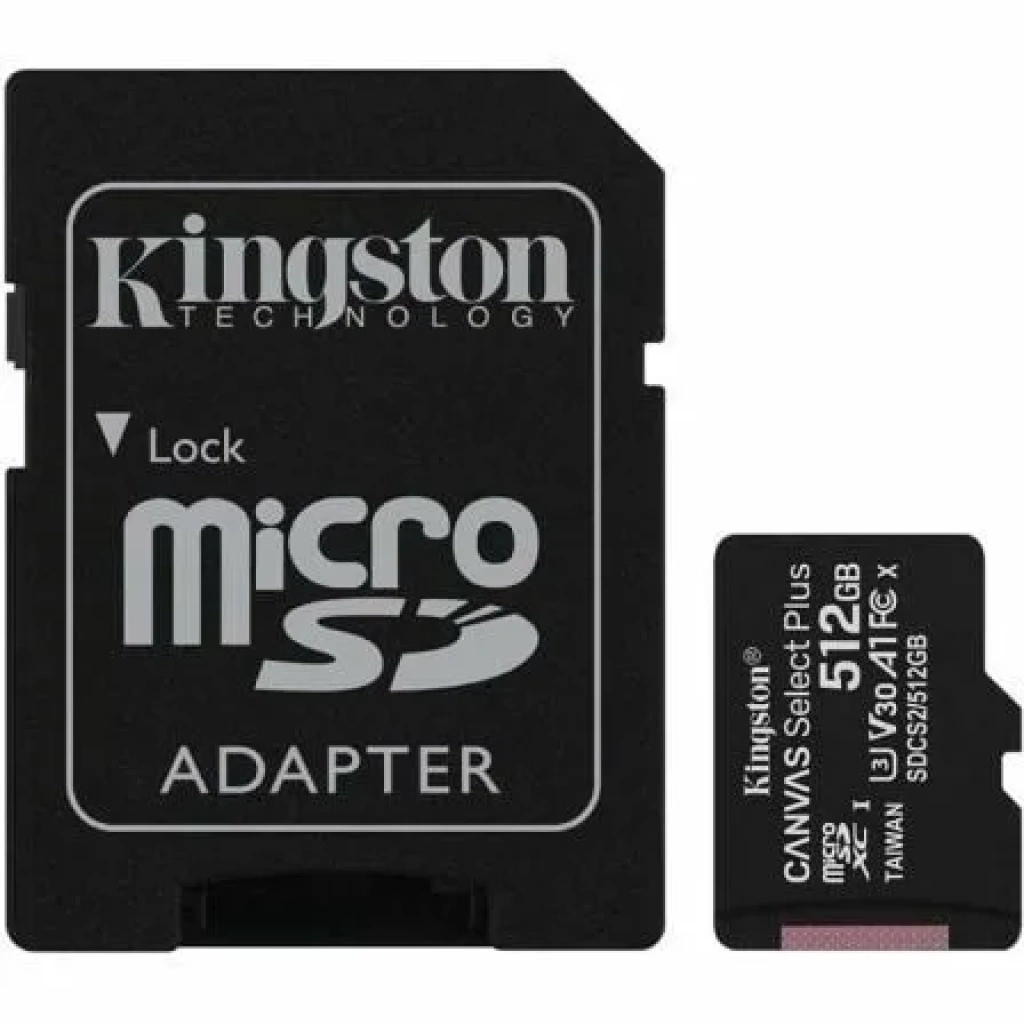 Tarjeta de Memoria Kingston CANVAS Select Plus 512GB microSD XC con Adaptador/ Clase 10/ 100MBs