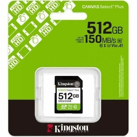 - Rendimiento: 512GB: 150 MB/s en lectura, categoría de velocidad UHS-I, U3, V30