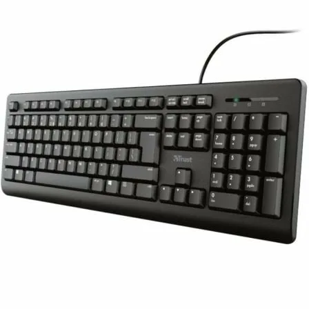 ‘Hay teclados de todas las formas y medidas, ¿pero qué pasa si uno solo ‘quiere algo básico? Eso es lo que ofrece exactamente el TK-150 de Trust.’ Tiene un diseño de tamaño completo, teclas resistentes al vertido de ‘líquidos y permite ajustar su altura. Incluso se suministra en un ‘paquete fácil de abrir y sostenible, con lo que se contribuye a respetar’ el medio ambiente y se ahorra tiempo. El teclado TK-150 responde ‘exactamente a las necesidades de cada usuario.