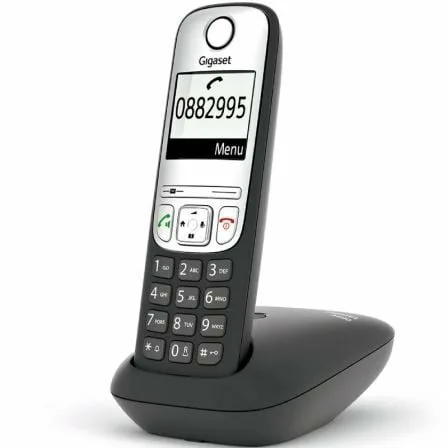 Lo primero que se nota sobre el Gigaset A690 es su gran pantalla gráfica iluminada en blanco y negro. La pantalla tiene varias ventajas: la gran pantalla numérica en el modo de marcación y el fuerte contraste entre las letras blancas y el fondo negro se han diseñado para garantizar que el teléfono sea aún más fácil de usar. El teclado ergonómico con teclas iluminadas y el manejo intuitivo, también contribuyen a que hablar por teléfono sea lo más cómodo posible.