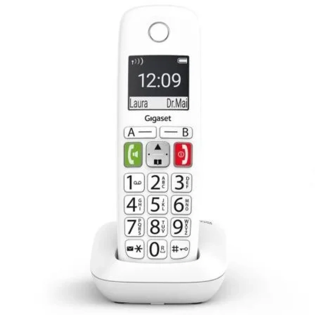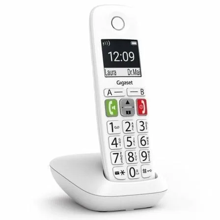 Si el simple hecho de marcar un número de teléfono es sencillo, el resto de la experiencia telefónica será mucho más agradable. Esta es exactamente la razón por la cual el teclado ergonómico del teléfono de teclas grandes Gigaset E290 ahora hace que usar el teléfono sea lo más cómodo posible. Las teclas grandes están iluminadas y claramente etiquetadas para garantizar una buena legibilidad. Puede guardar contactos particularmente importantes, como personas para llamar en caso de emergencia, en una de las dos teclas de repertorio (A y B). La función de llamada directa es útil si solo desea poder llamar a un número desde el teléfono. En situaciones difíciles, puede presionar cualquier botón y se marcará el número que haya almacenado.