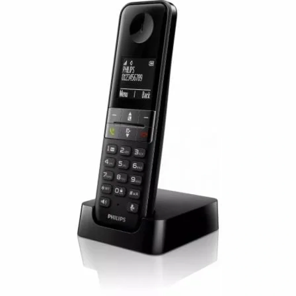 ‘Con un diseño moderno y un acabado de máxima calidad, este teléfono ‘inalámbrico exquisitamente estilizado dispone de una gran pantalla ‘invertida, botones chapados en metal y Crystal Clear Sound. Su estilo ‘soberbio y sus funciones lo hacen un compañero ideal para mantener el ‘contacto.