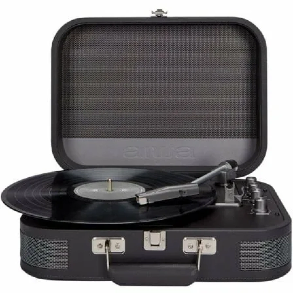 - Tocadiscos Vintage en Maletín de Cuero sintético con Bluetooth de 2 vías, Reproductor y grabadora USB-MP3